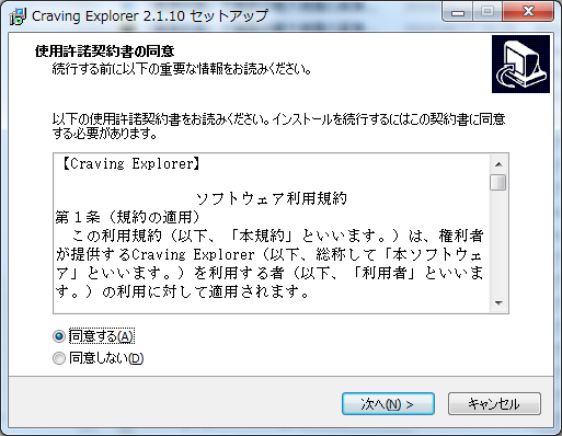 Craving Explorer 2 ダウンロード(https://v2.crav-ing.com/) - 通常のインストール方法と同様にダウンロードした「.exe」を実行し、表示に従ってインストールを行います。